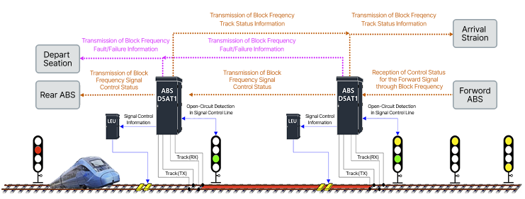 The Automatic Block System is used in single and double track block sections. It automatically controls signal indications and the transmits/receiver of frequencies related to track circuits and forword train operation information, based on trains entering the block section.